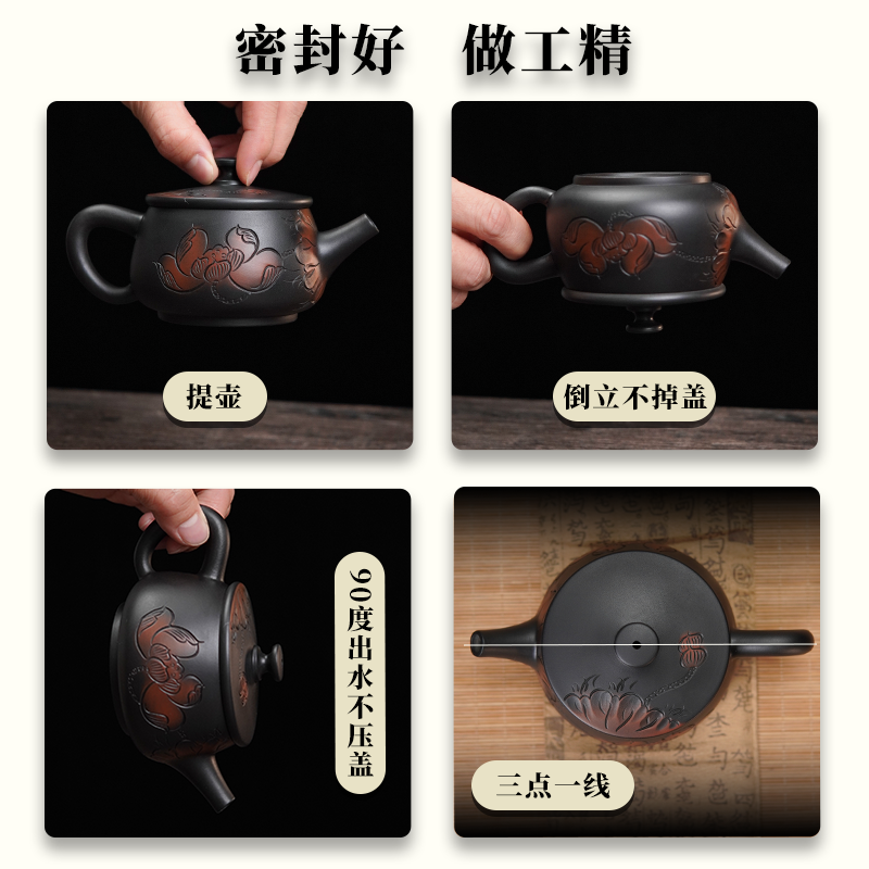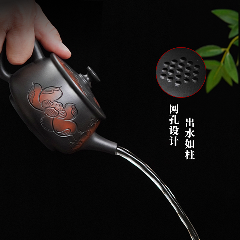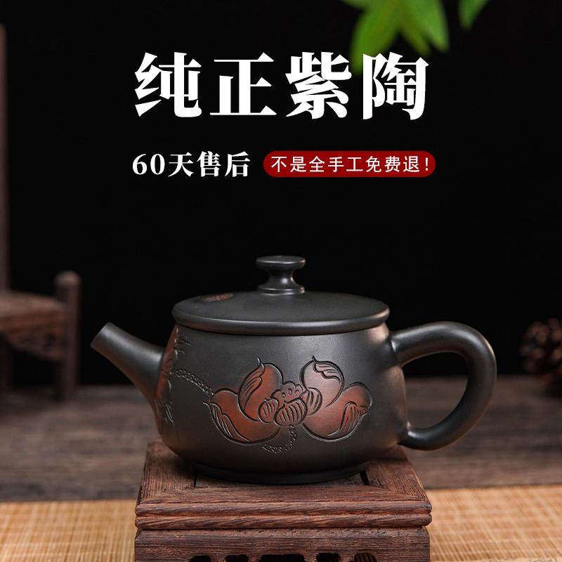 建水紫陶茶壶泡茶家用高档汉瓦石瓢纯茶具手工拉坯非坭兴陶瓷紫砂