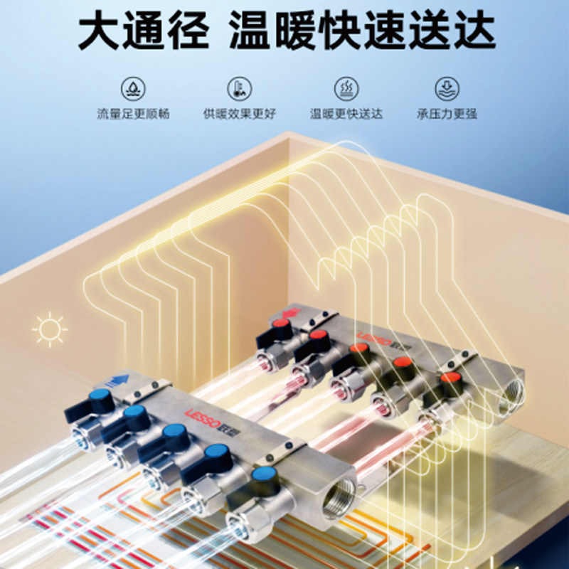 联塑全铜分水器地暖分水器超大流量不锈钢分水器