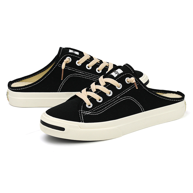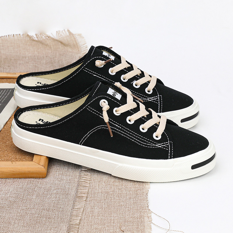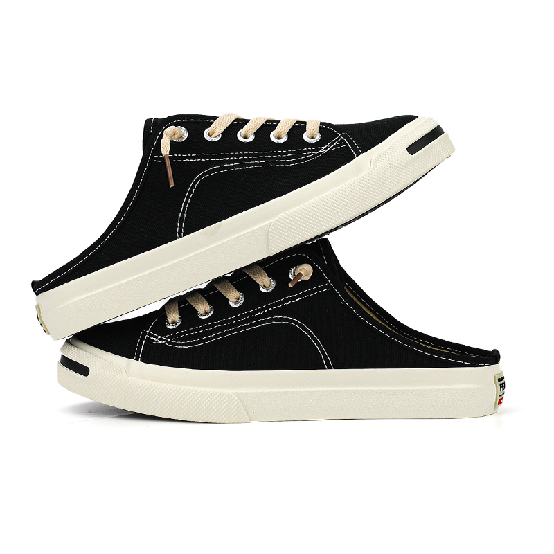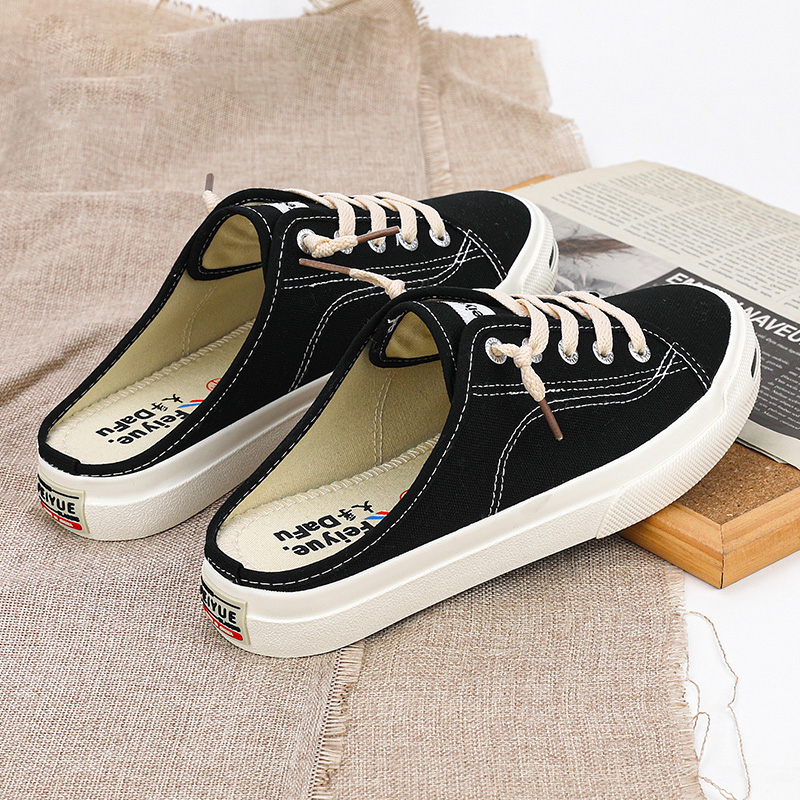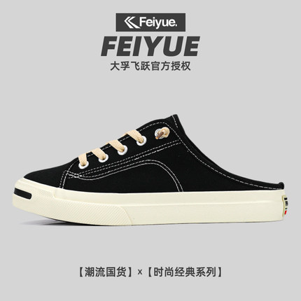 飞跃女鞋夏季开口笑一脚蹬懒人鞋舒适百搭休闲鞋半拖鞋透气帆布鞋