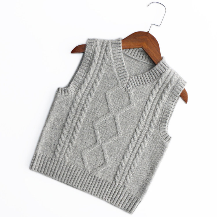 2025春秋装新款男童羊毛衫女童纯色麻花背心儿童毛衣薄款V领马甲
