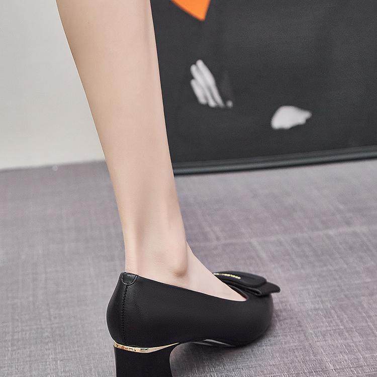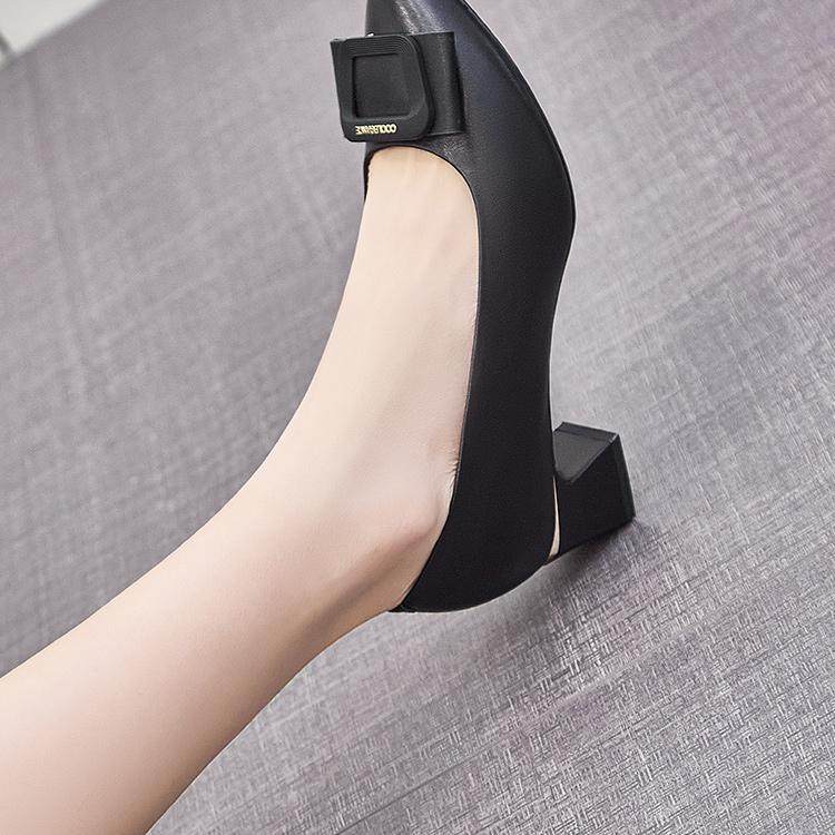 嘉俪多女英伦单鞋浅口尖头牛皮粗中跟蝴蝶结通勤2025新款春季时尚