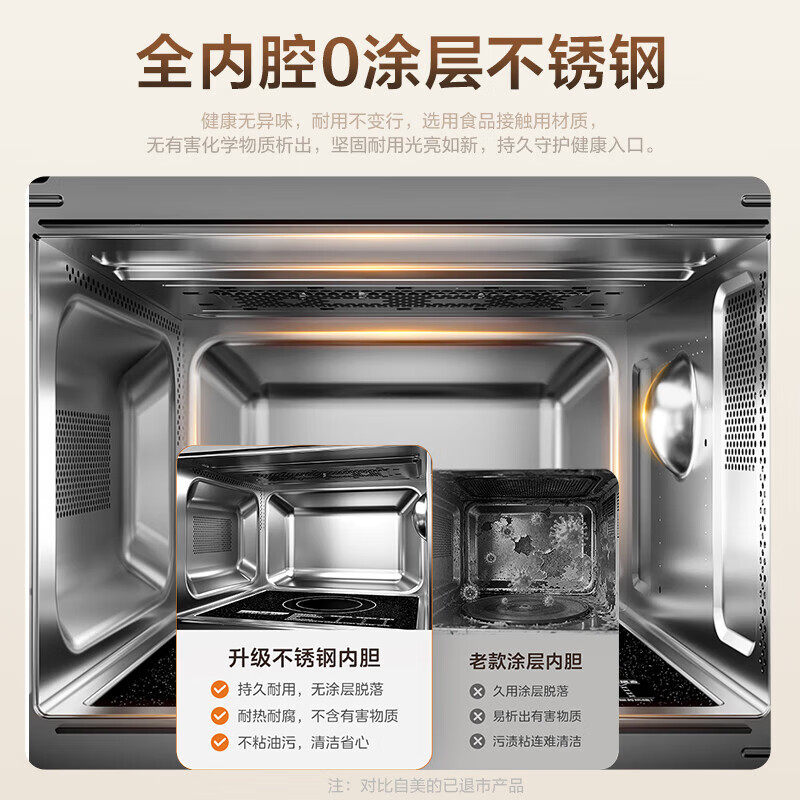 美的微波炉2026新升级不锈钢内胆一级能效平板家用变频微蒸烤C231