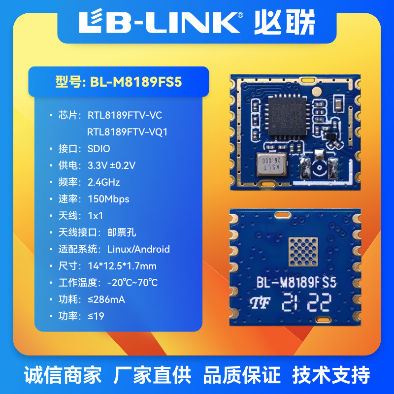 BL-M8189FS5无线2.4g模块SDIO接口RTL8189FTV无线wifi行车记录仪
