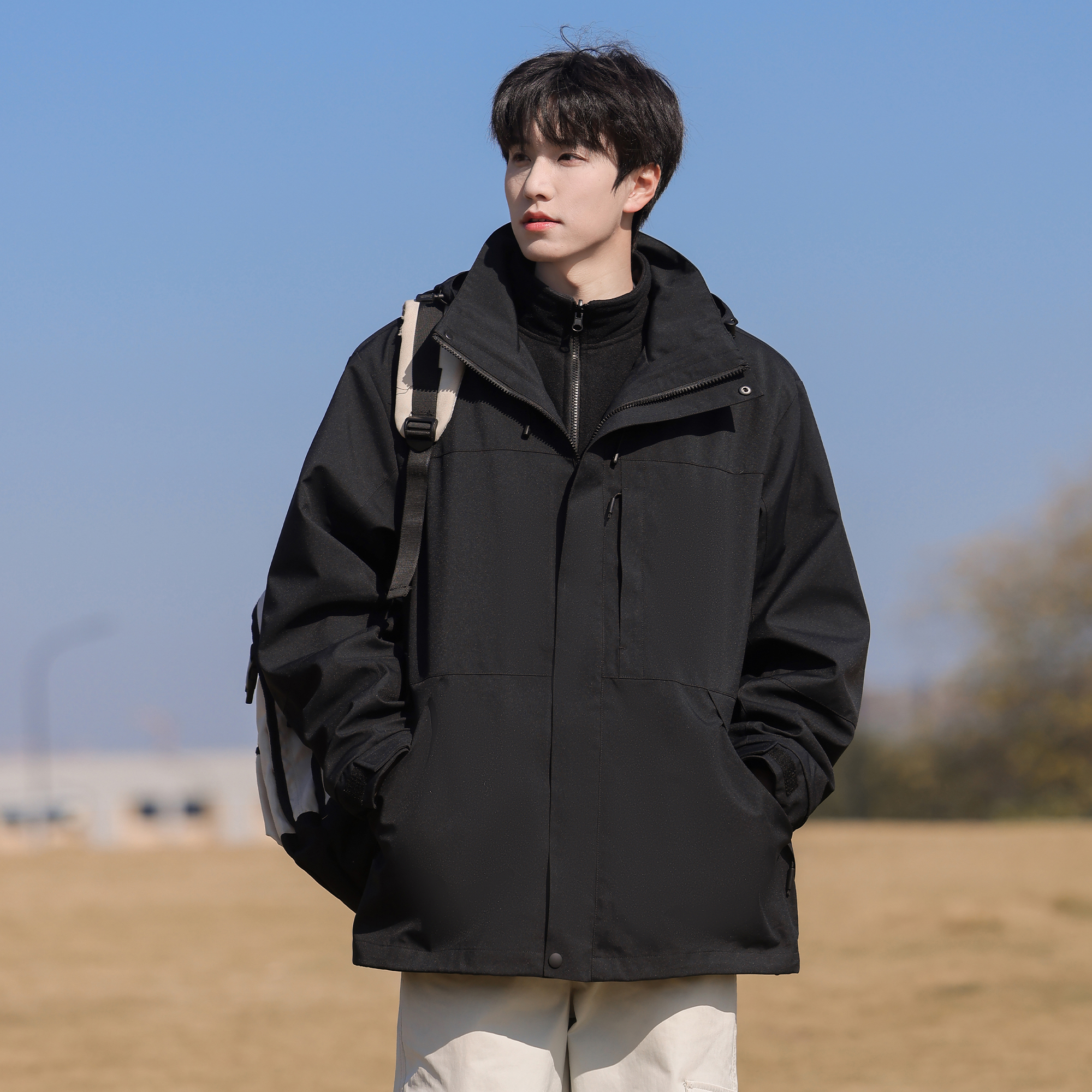 三合一冲锋衣男春秋季户外三防工装连帽夹克2025新款男生情侣外套