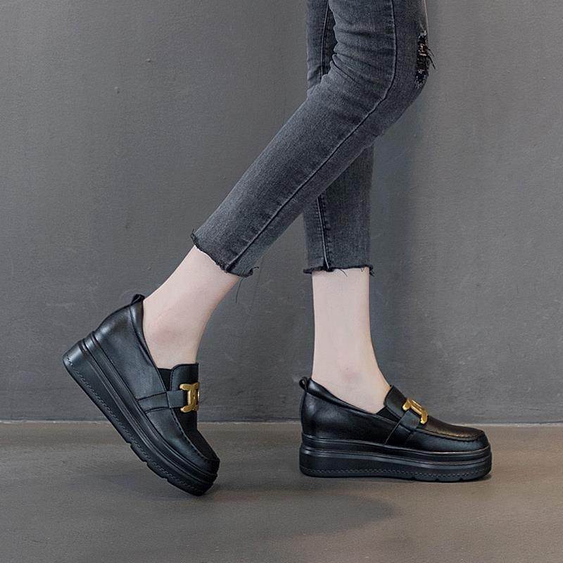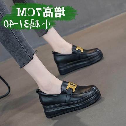 香港内增高女鞋乐福鞋真皮厚底运动休闲单鞋显瘦百搭小黑鞋小码秋