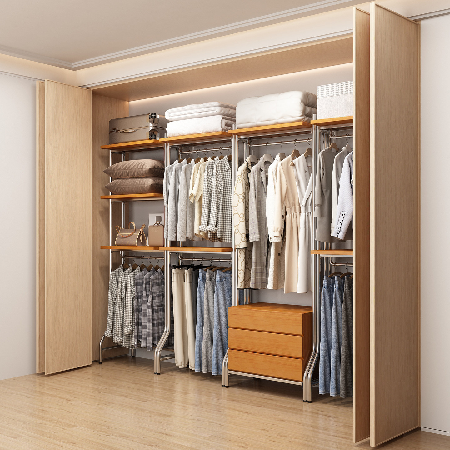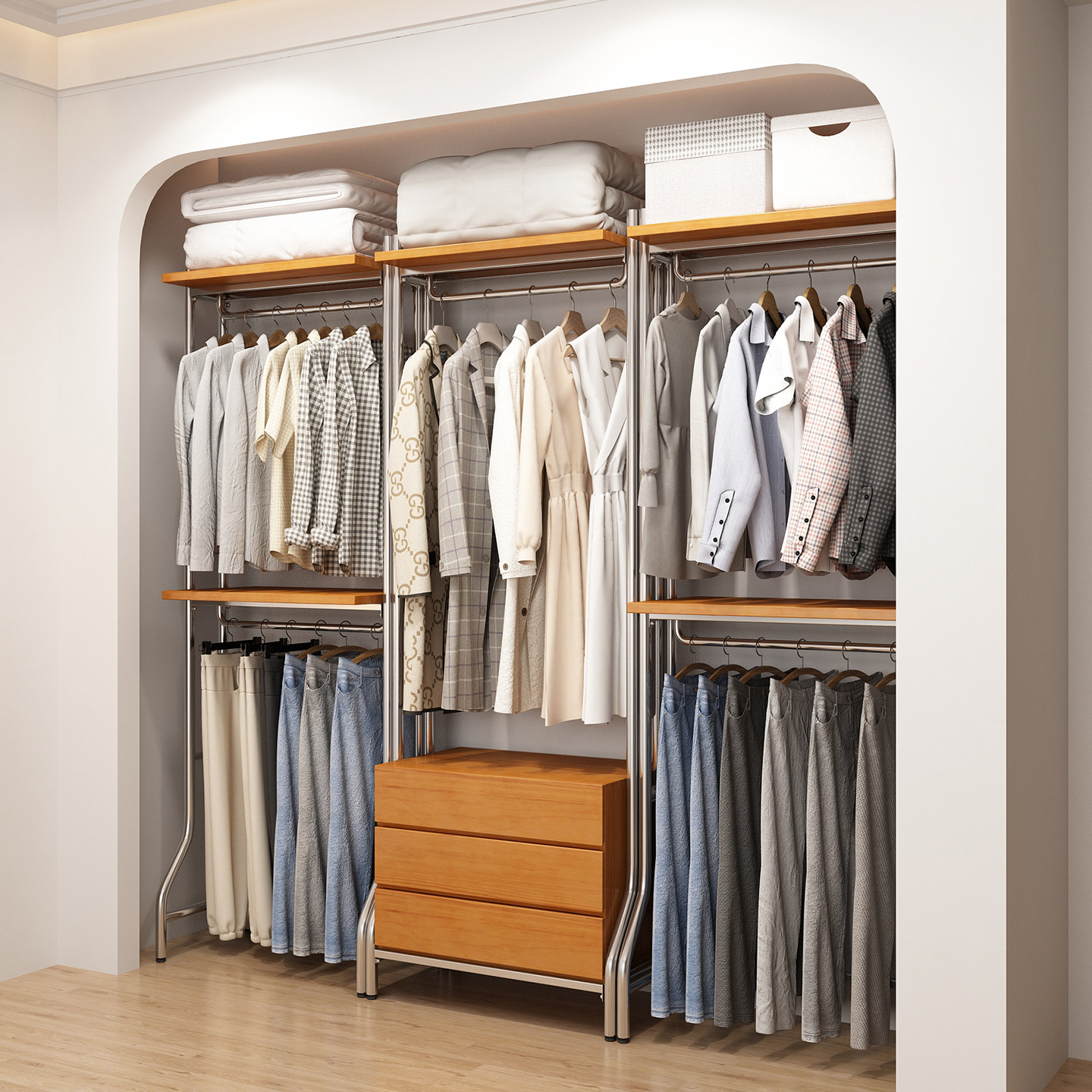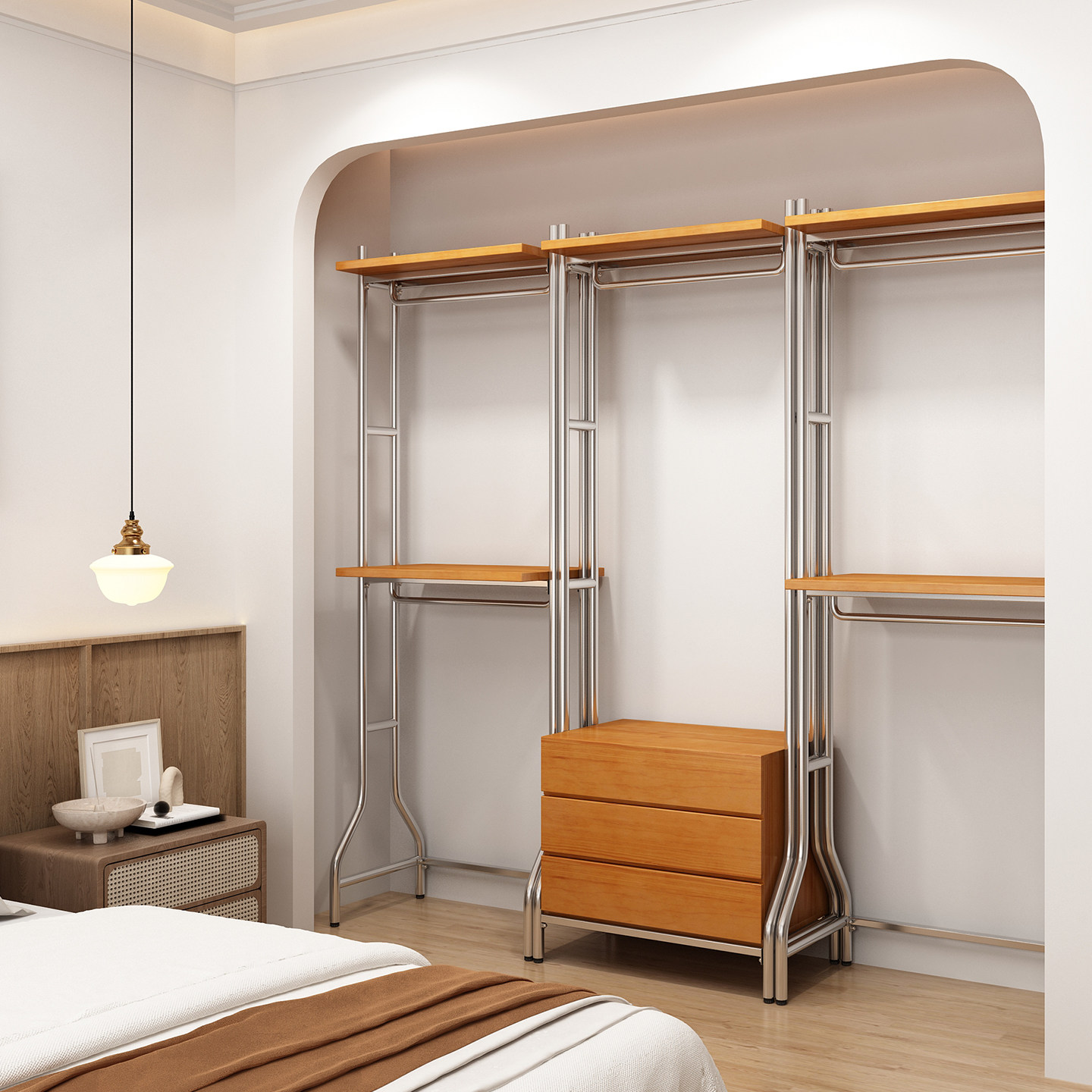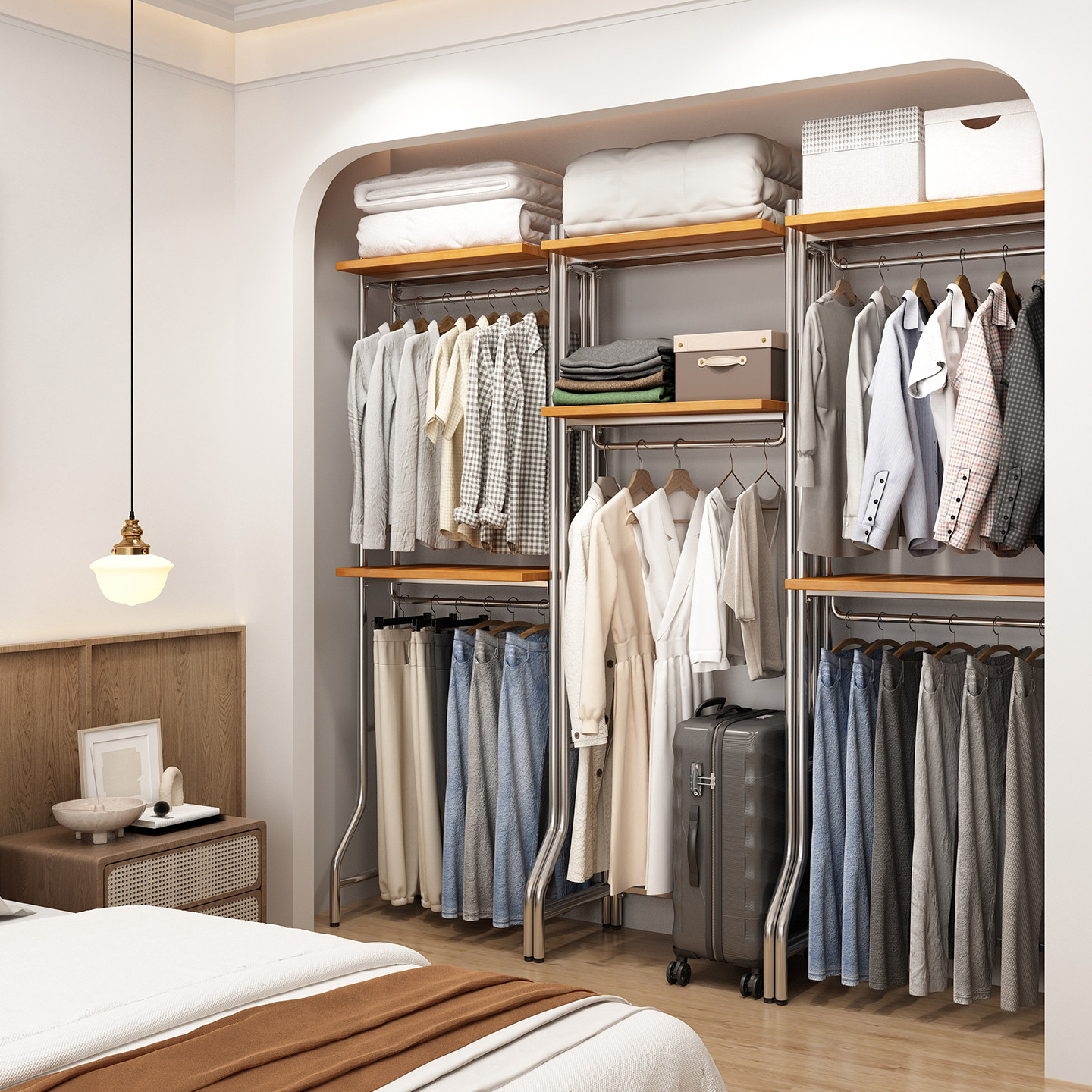 开放式衣柜北欧铁艺步入式衣架落地卧室框架衣橱金属衣帽间置物架