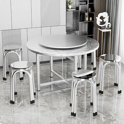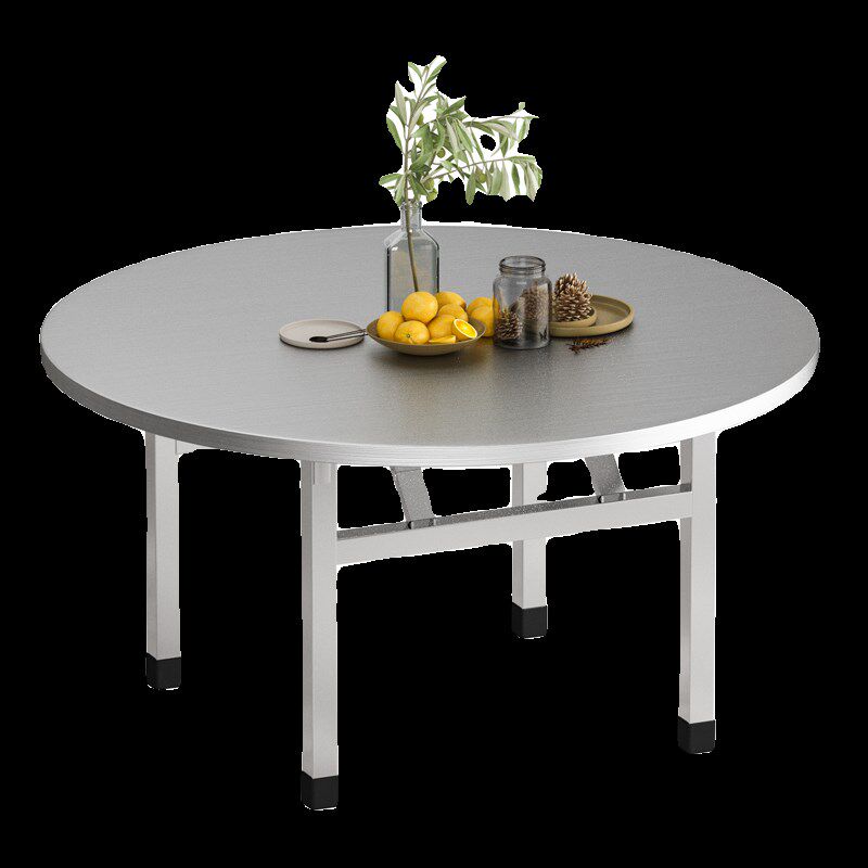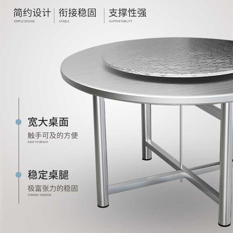 热销304不锈钢圆桌家用餐桌转盘食堂饭店餐饮大排档折V叠桌子收纳