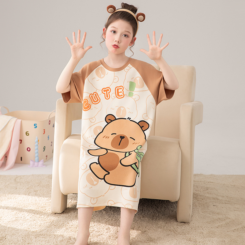 2025新款女童睡裙短袖仿棉儿童库洛米公主女孩睡衣夏季薄款家居服