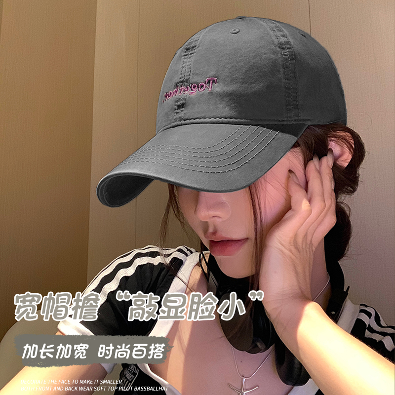 潮牌字母刺绣棒球帽男女韩版时尚百搭软顶鸭舌帽大头围显脸小帽子