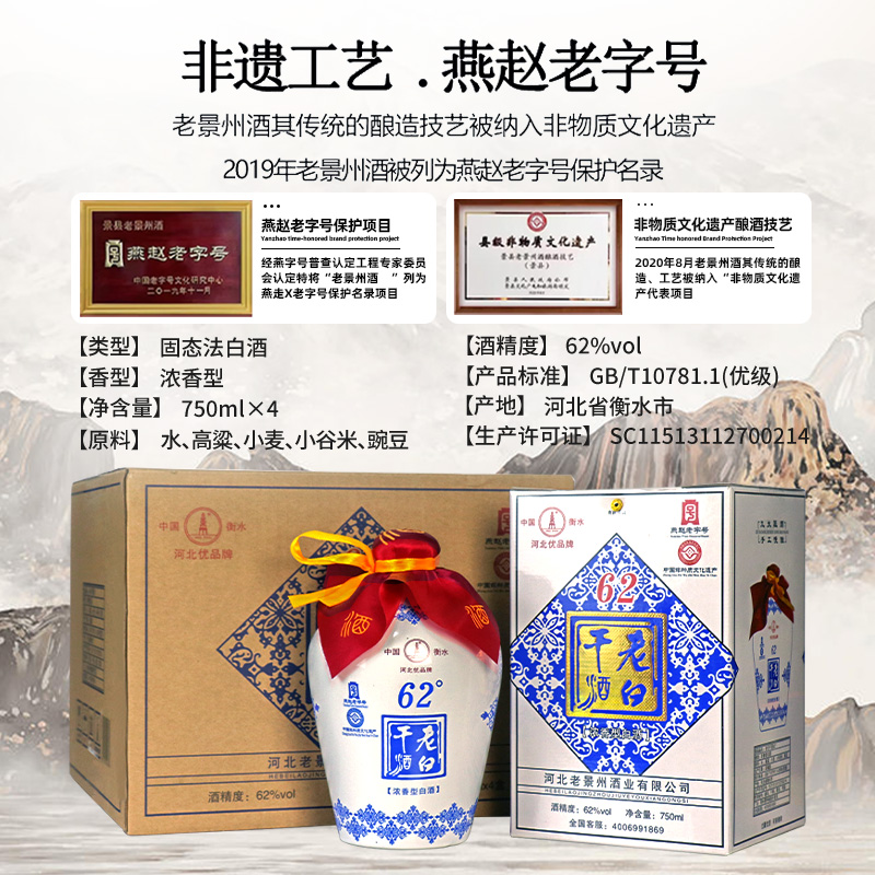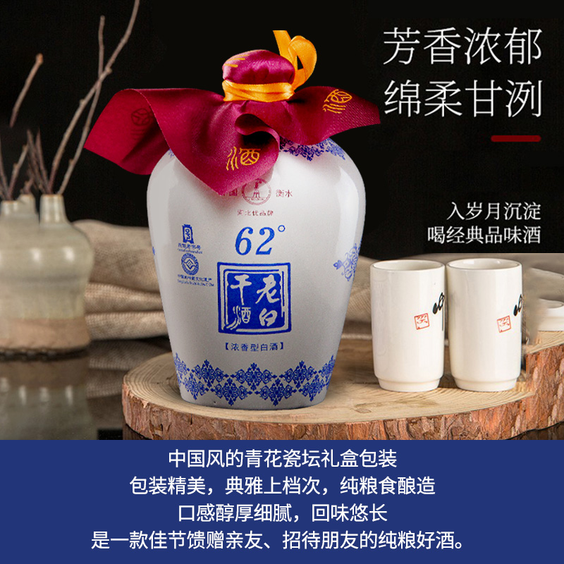 衡水53/62/67度老白干白酒整箱特价清仓青花坛装白酒纯粮食酒送礼