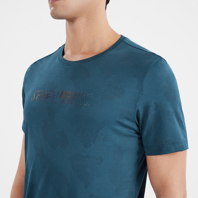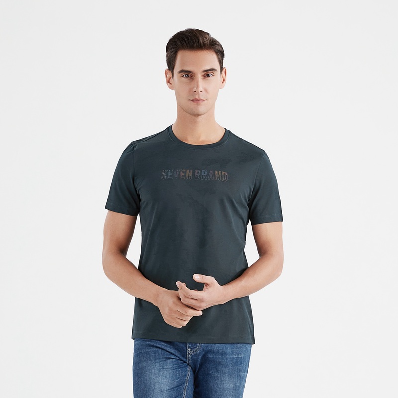 柒牌男士短袖t恤夏季新款时尚休闲不规则提花圆领体恤上衣薄