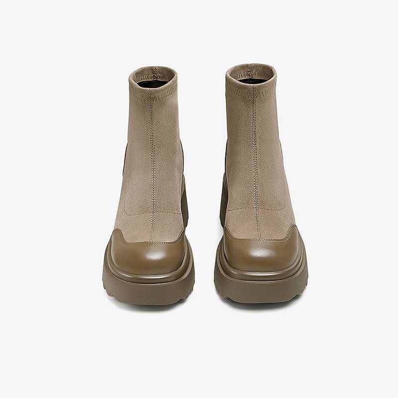 专柜正品百思图2024冬季高跟弹力靴女瘦瘦短靴防水台M5202DD4