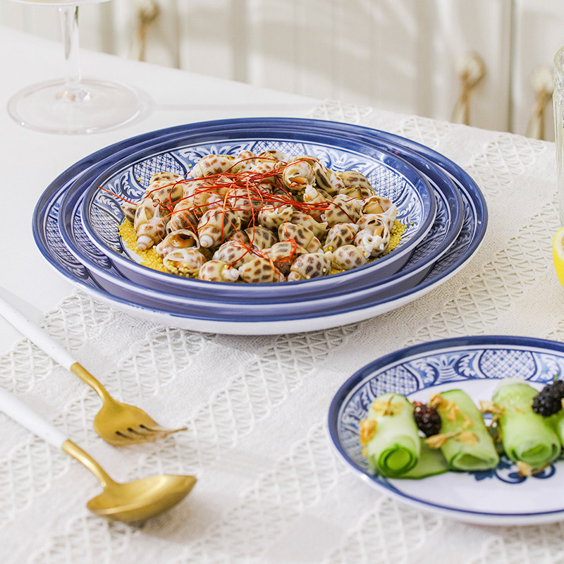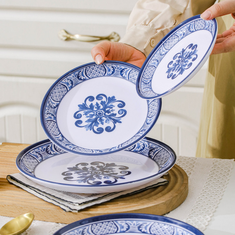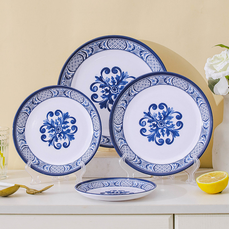 新疆民族风密胺碟子创意菜盘子水果盘8寸塑料浅盘点心凉菜碟商用