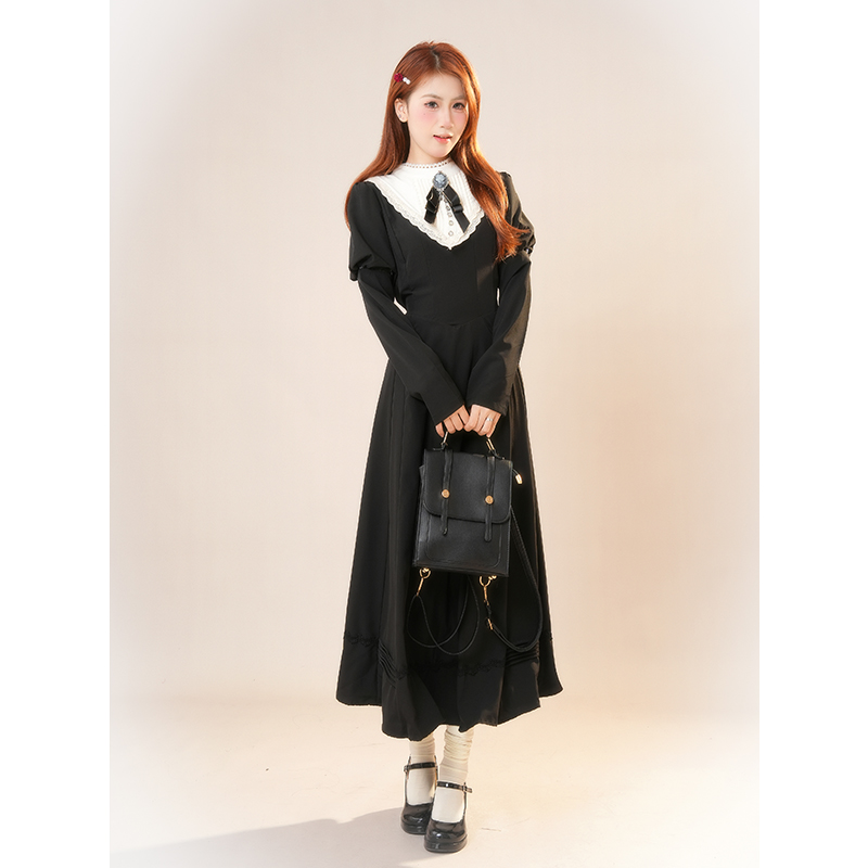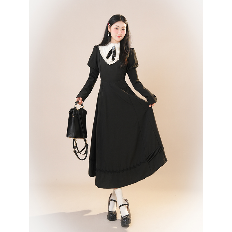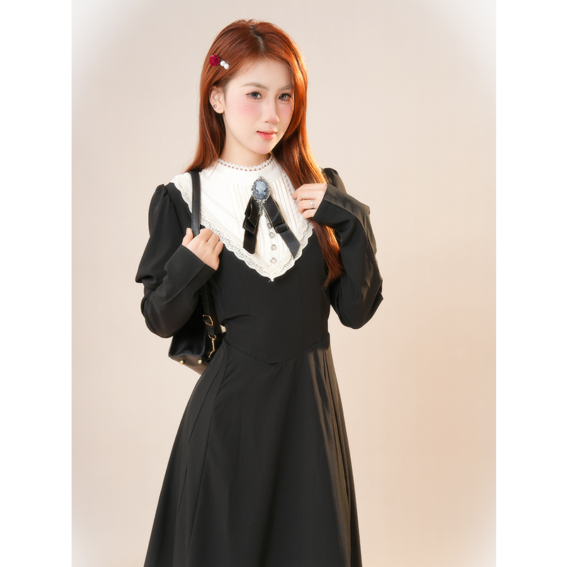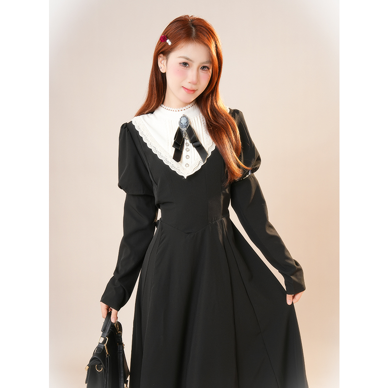 优雅大小姐 春夏新款法式赫本设计感宫廷风收腰lolita暗黑连衣裙