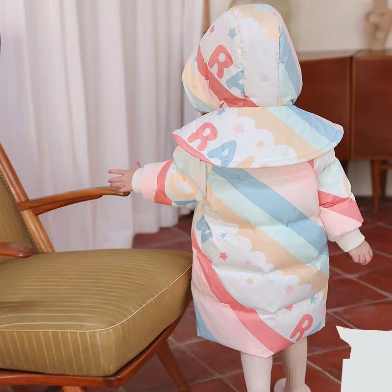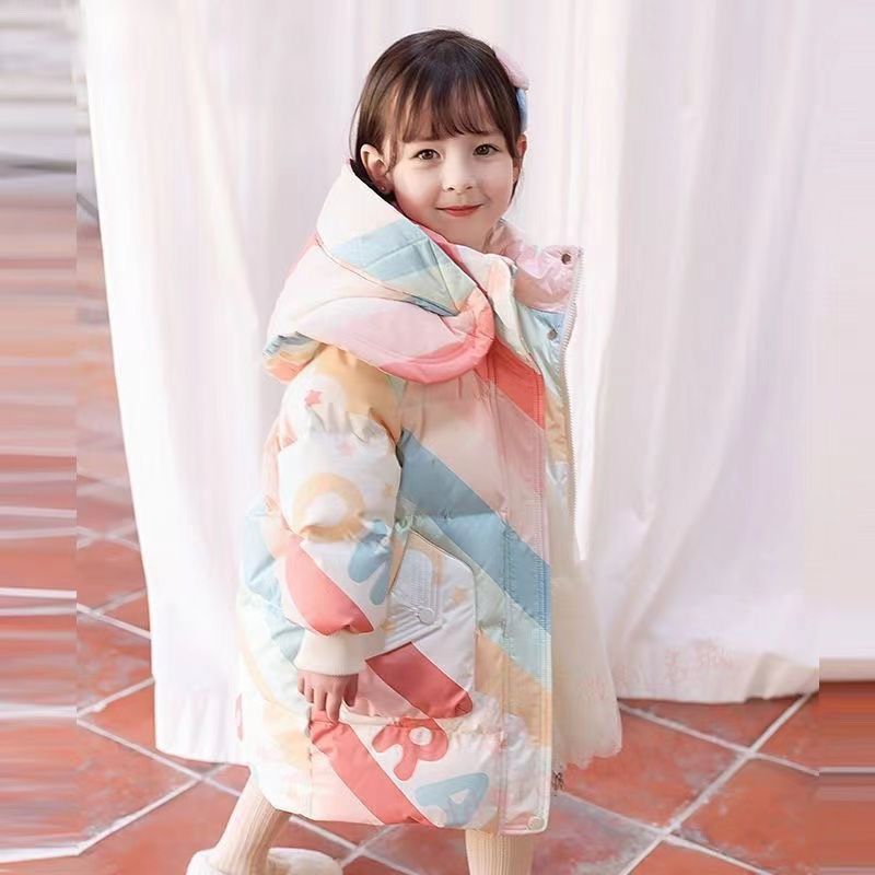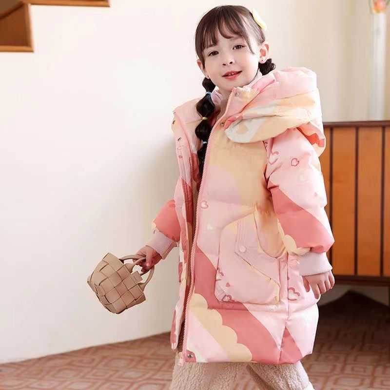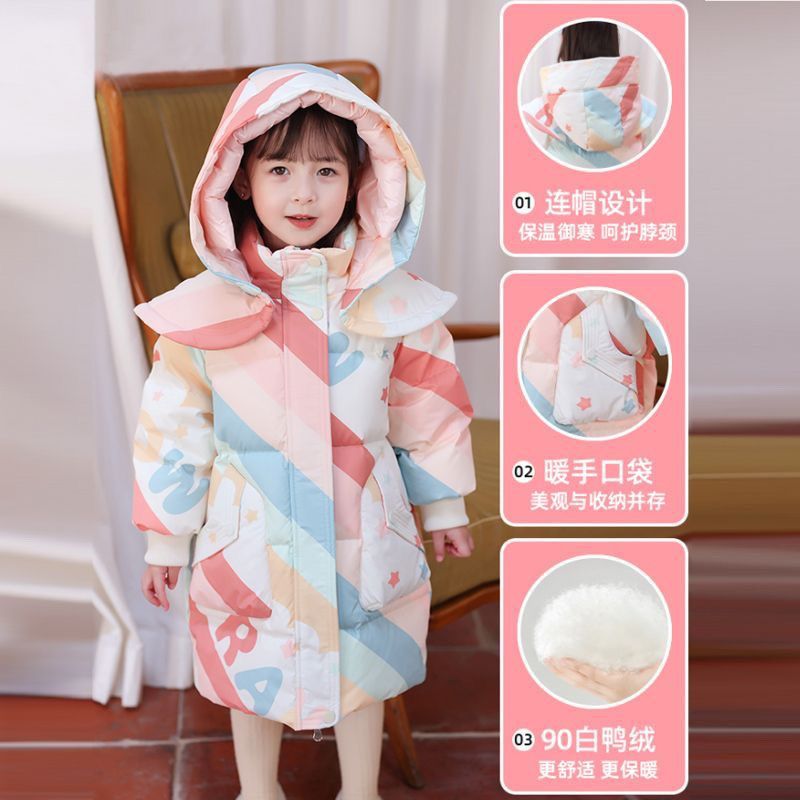 女童三防羽绒服中长款儿童2024冬装新款韩版加厚洋气白鸭绒外套潮