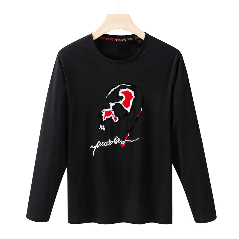 CA23卡换季断码清仓秋季男士时尚钉珠黑色圆领全棉休闲长袖T恤衫