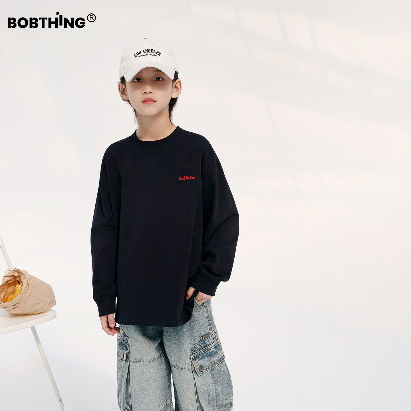 男童春装纯色小字母T恤2026新款儿童百搭纯色上衣中大童长袖打底