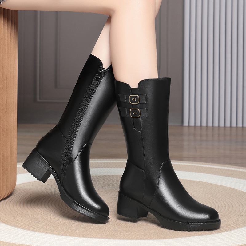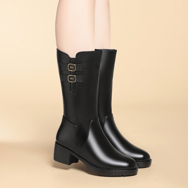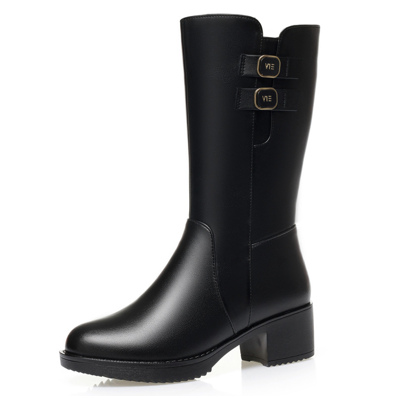 新款舒适软底冬季女靴软皮羊毛棉靴雪地靴高筒靴粗跟防滑加绒长靴