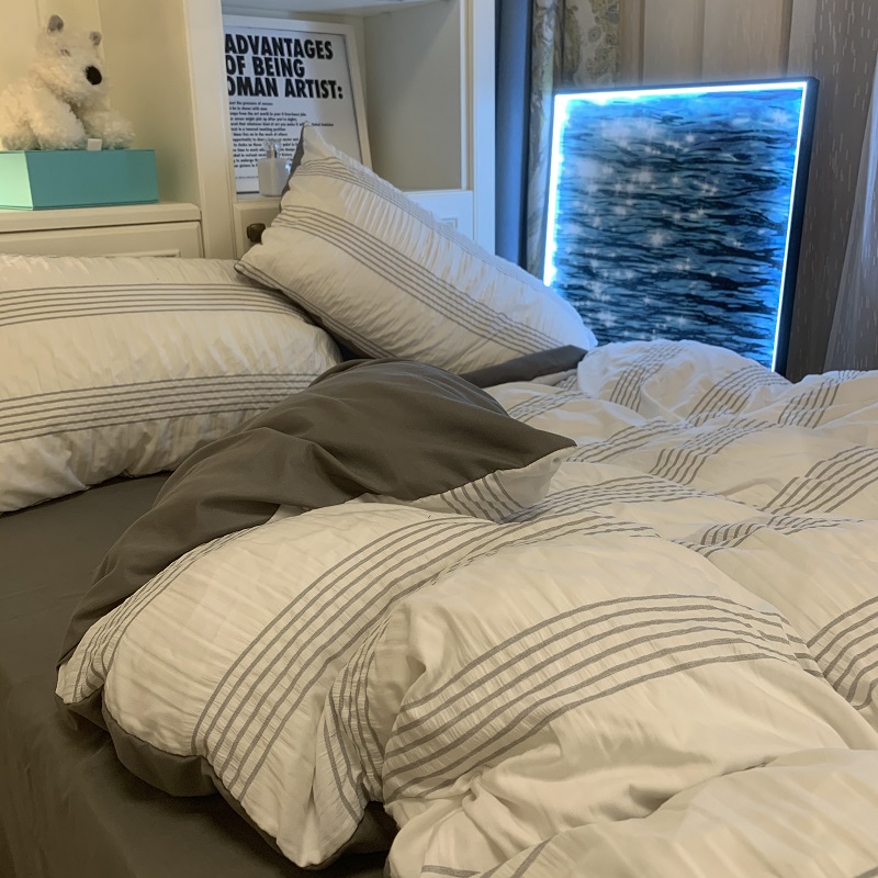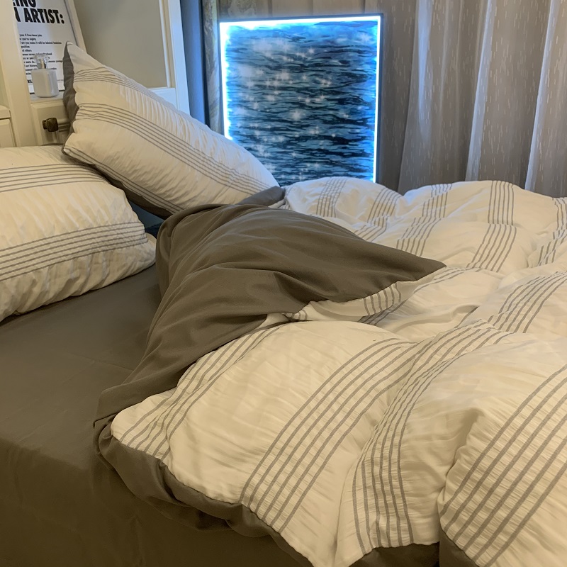 日式简约条纹泡泡纯色四件套水洗棉床单被套罩学生宿舍单人三件套