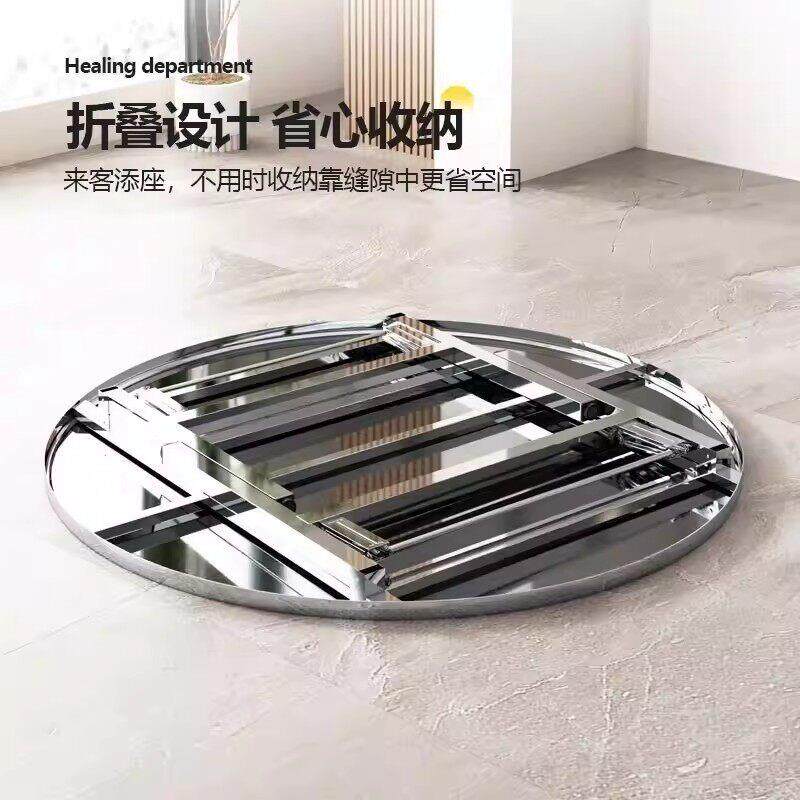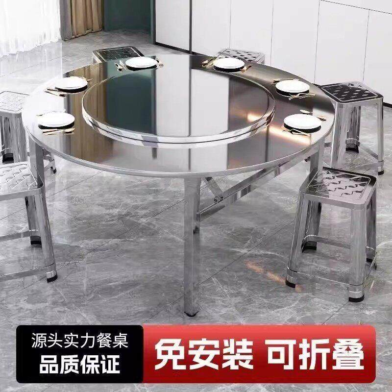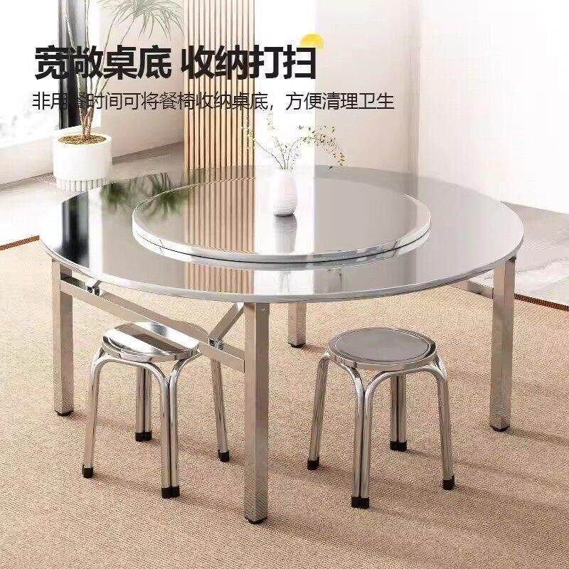 不锈钢圆桌折叠带转盘加厚家庭商用酒店户外吃饭圆桌餐桌摆摊农村