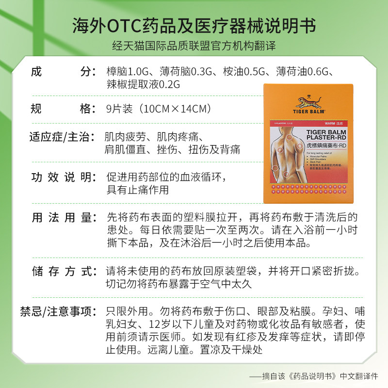 新加坡虎标贴膏镇痛膏药温感清凉贴9片虎牌腰颈肩贴香港版膏药贴