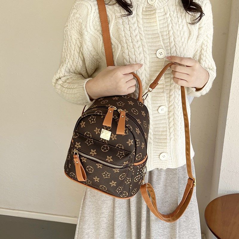 双肩背女士2024当季流行新款百搭棕色个性洋气小背包印花字母高级