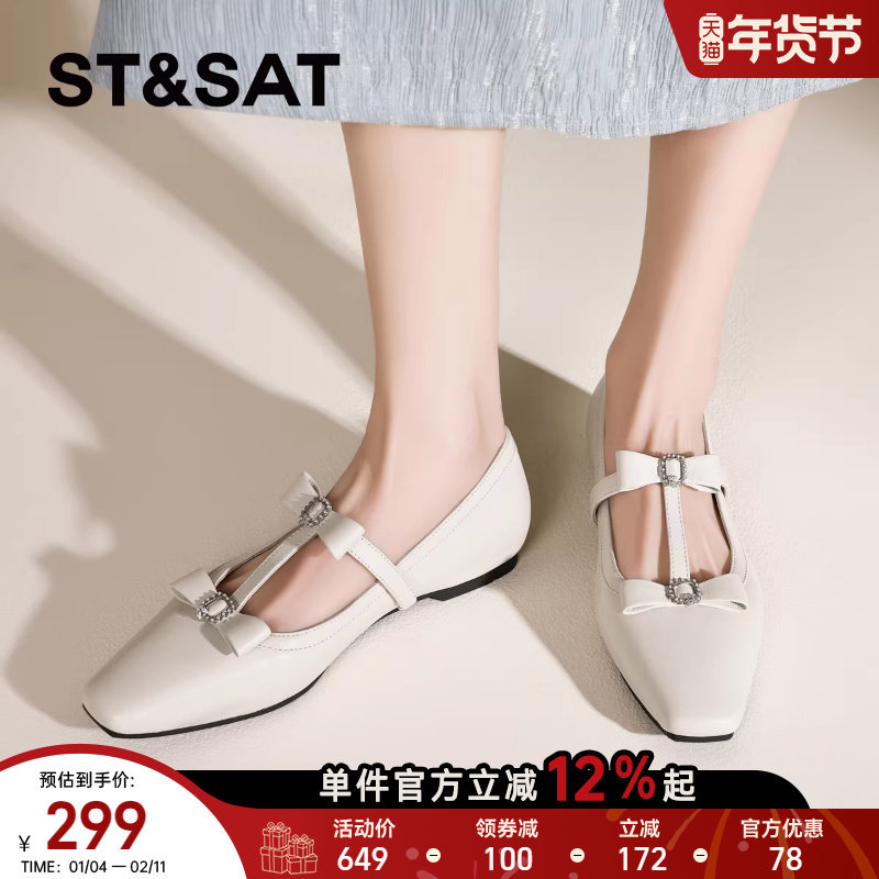 星期六羊皮浅口单鞋女鞋2025新款爆款法式气质低跟玛丽珍鞋