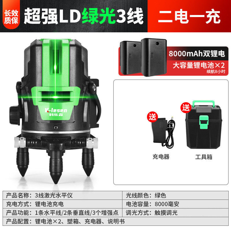 德国进口绿光2线3线5线水平仪新款爆闪强光高精度贴墙贴地仪自动
