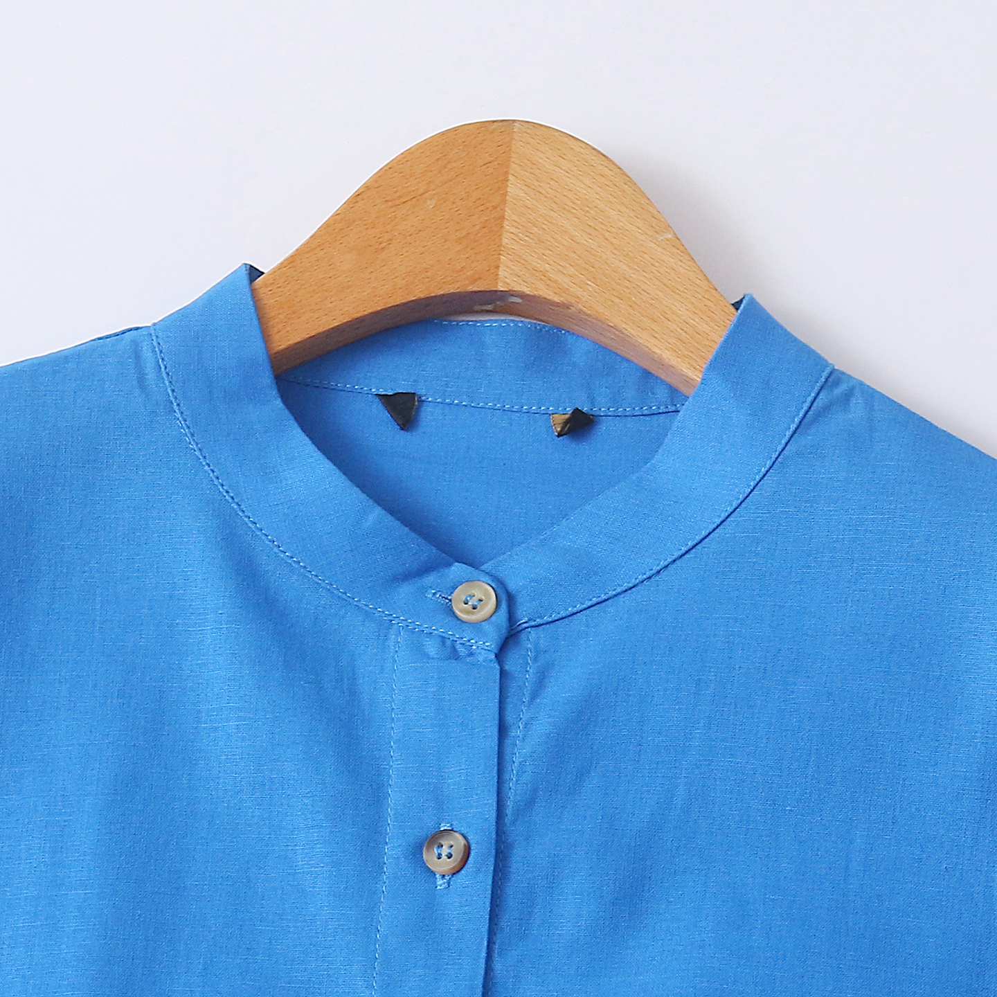 棉麻衬衫 秋季新款外贸女装简约百搭立领单排扣长袖显瘦衬衫32816