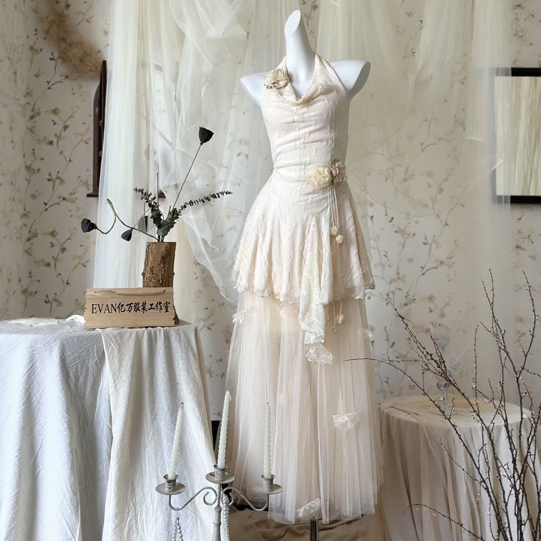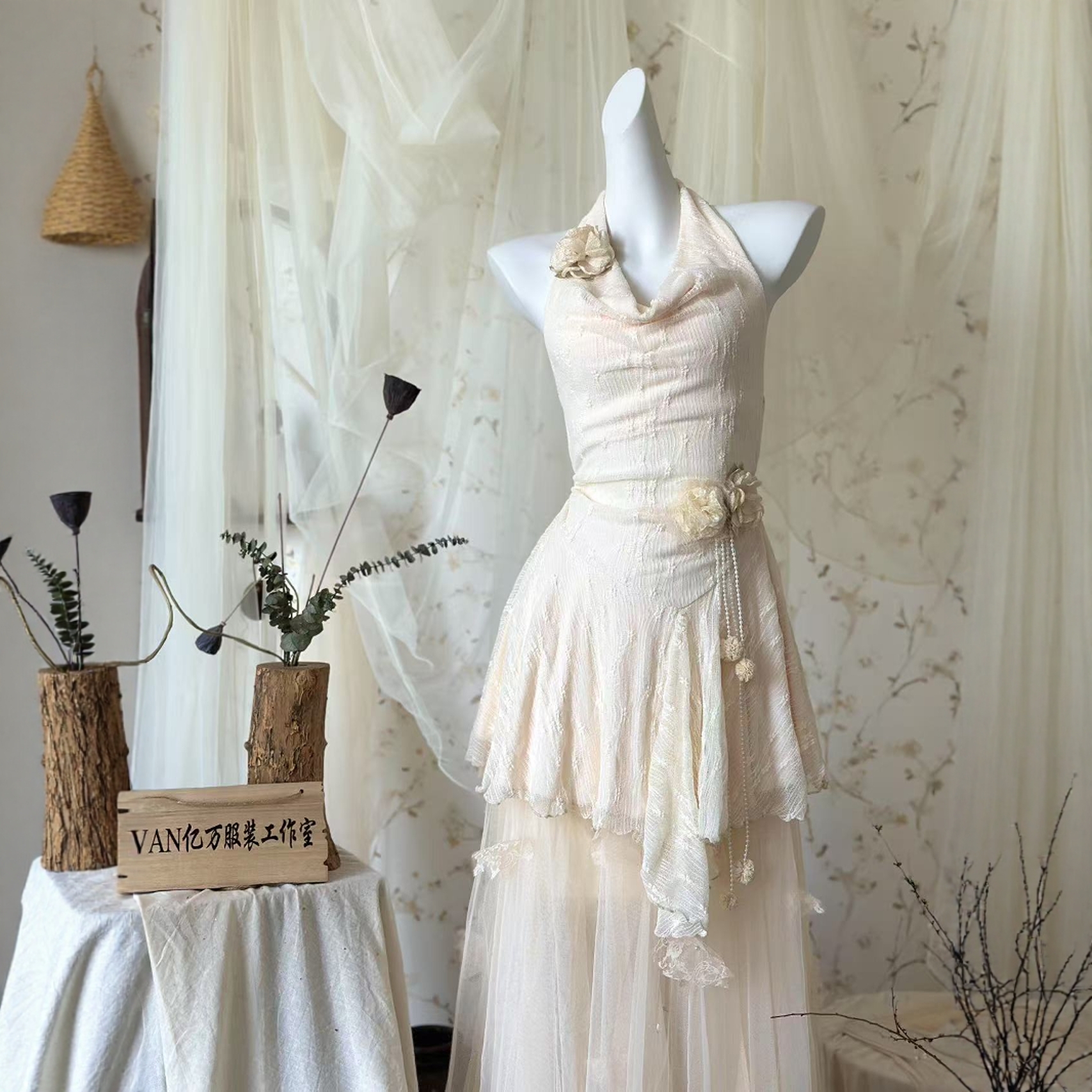 2025原创《月光漫步》 | 设计感重工玫瑰挂脖抹胸上衣网纱半身裙