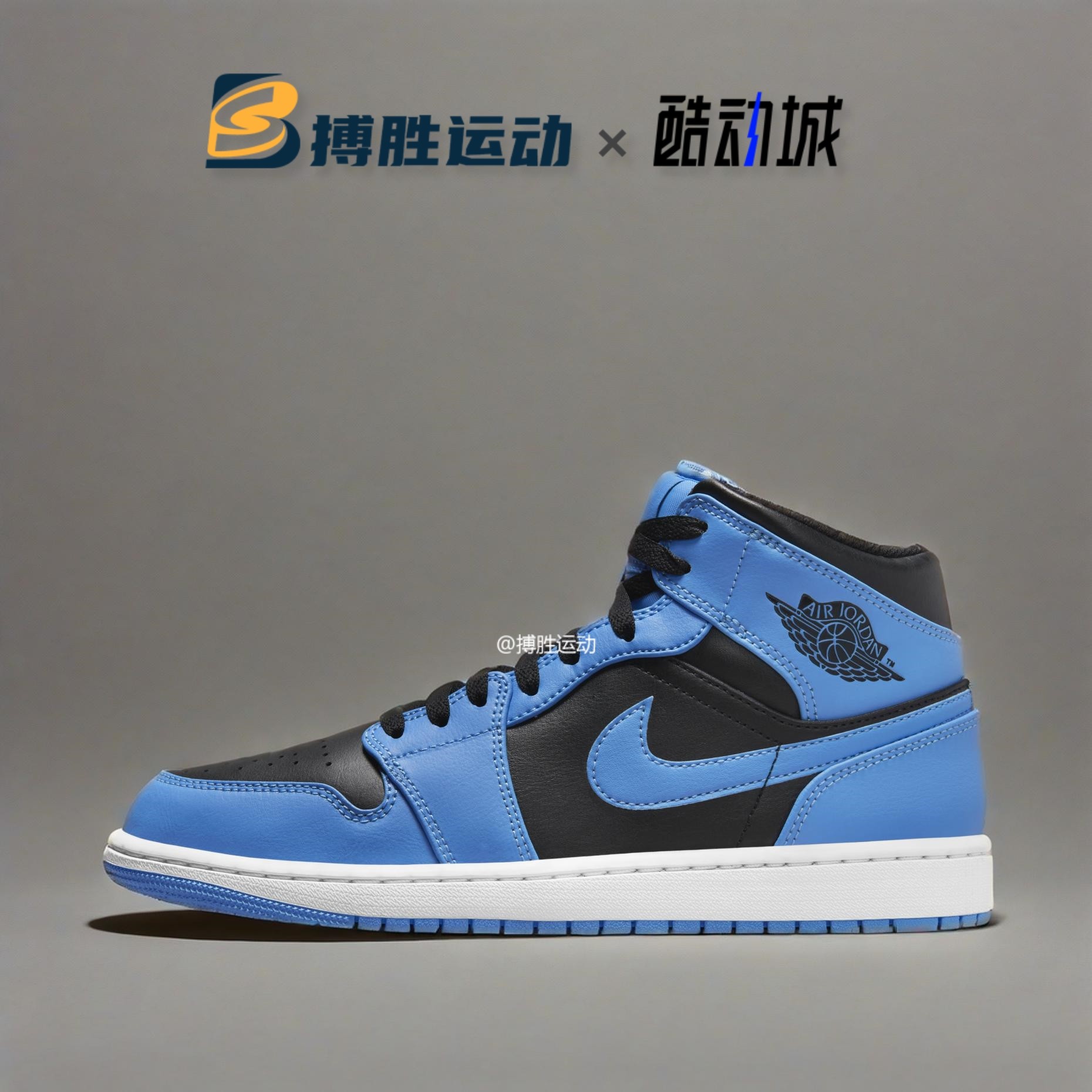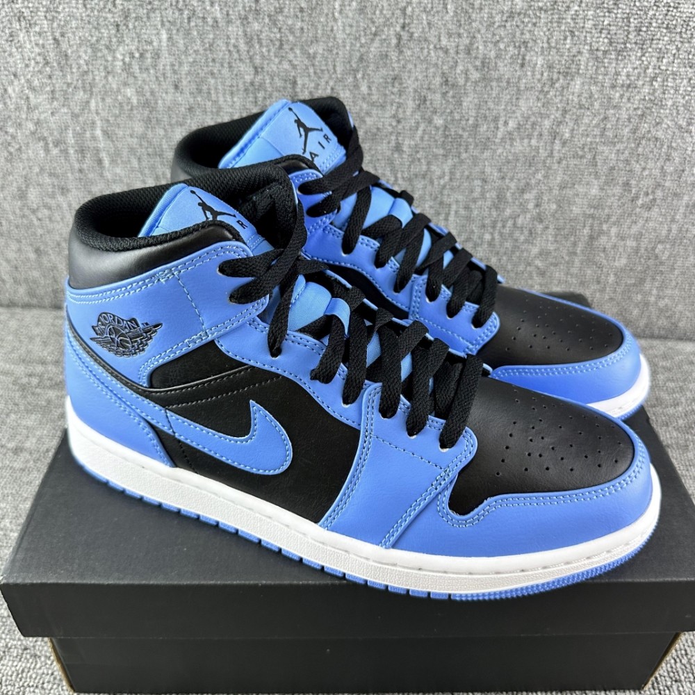 耐克Air Jordan 1 Mid AJ1蓝黑 中帮男款复古休闲板鞋 DQ8426-103
