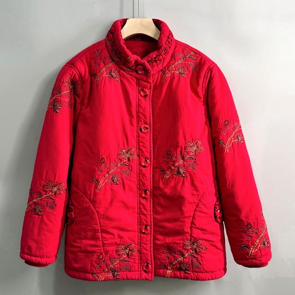 老太太红色棉袄中老年人女加肥纯棉棉服老人妈妈奶奶加厚棉衣外套