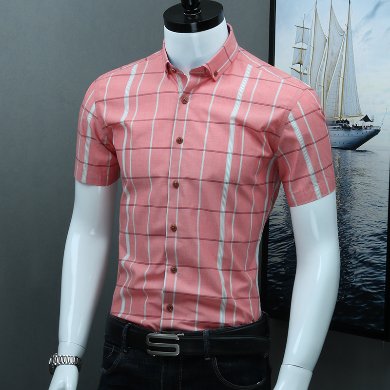夏季男士格子衬衫短袖商务休闲纯棉免烫春秋长袖衬衣高级感修身潮