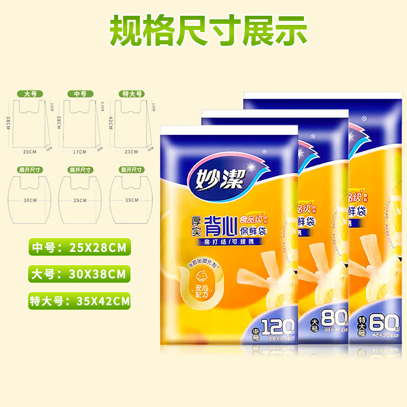 妙洁保鲜袋抽取背心式食品级透明塑料袋分类收纳耐微波炉高温冷藏