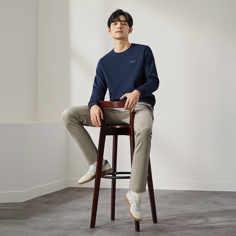 【加绒】柒牌假两件卫衣男舒适新款时尚休闲保暖男士百搭圆领上衣