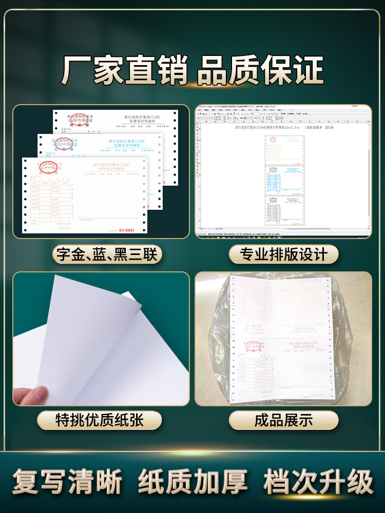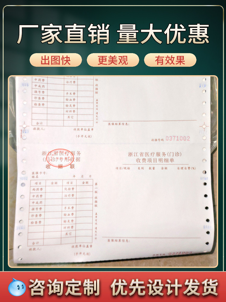 现货浙江省医疗服务(门诊)专用收据收费票据三联票据带孔电脑打印收据医院收款单无碳复写纸收据印刷打孔联单