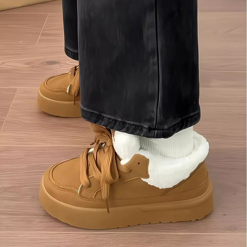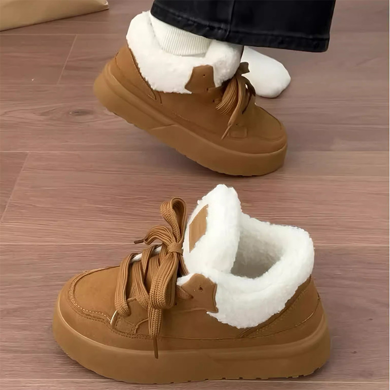 厚底加绒加厚板鞋2025新款冬季时尚雪地靴女鞋休闲保暖毛毛鞋子女