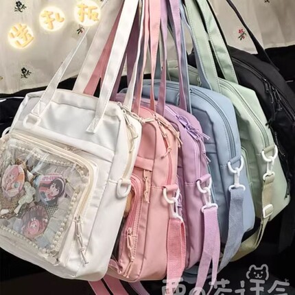 日系吧唧大食量帆布痛包女大容量透明斜挎包二次元休闲手提单肩包
