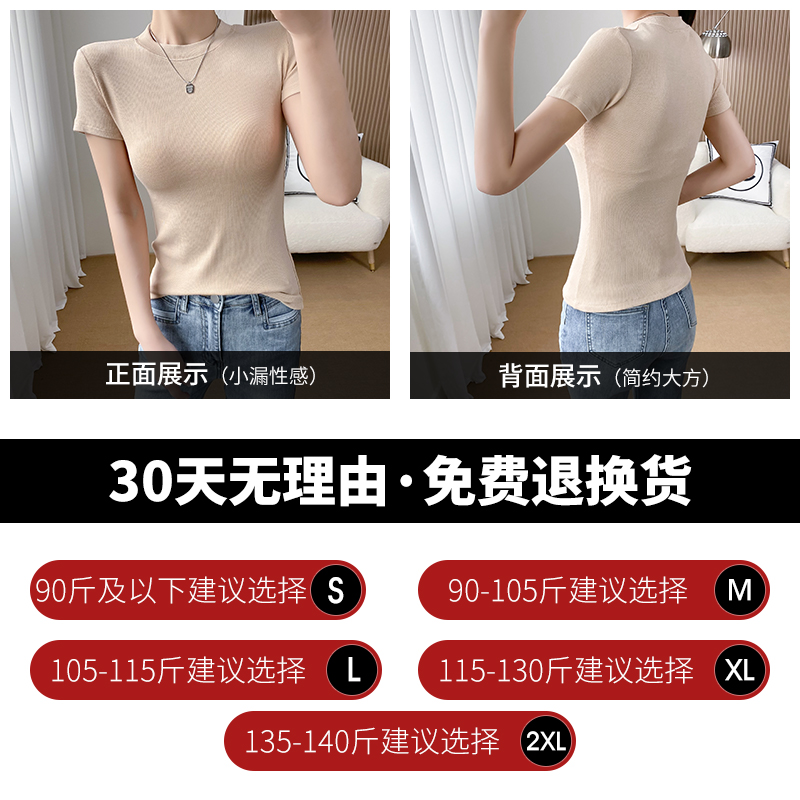 罗纹莫代尔小高领短袖t恤女白色显瘦气质小众外穿体恤春夏百搭潮