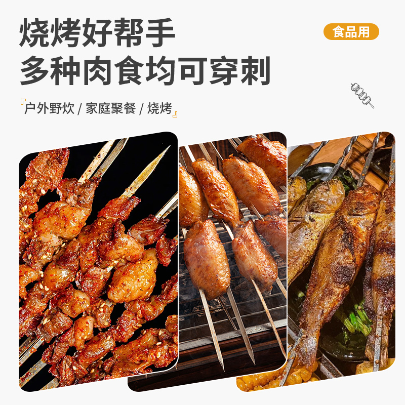 烧烤签子不锈钢扁签羊肉串烤肉烤串户外野炊铁钎子烧烤品工具商用