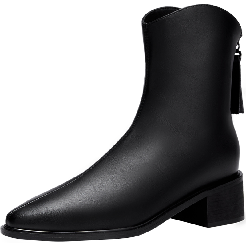 色非尖头后拉链气质骑士靴女款靴子秋冬季新款粗跟黑色显瘦女鞋