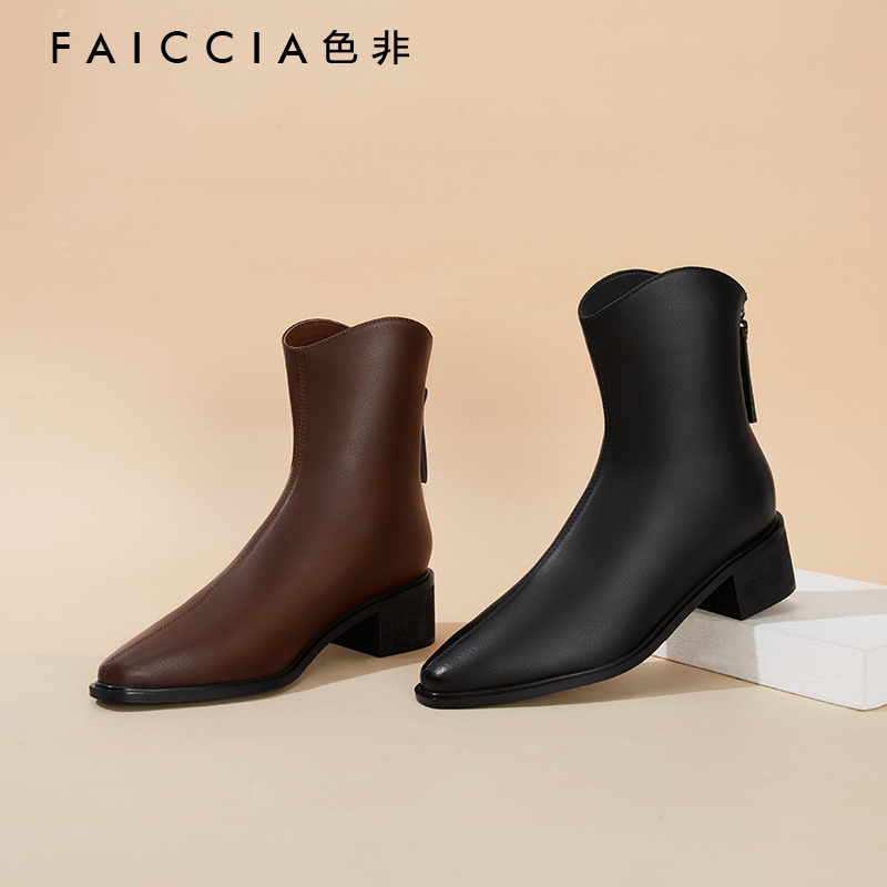 冬色非尖头坡跟异形跟白领女短靴