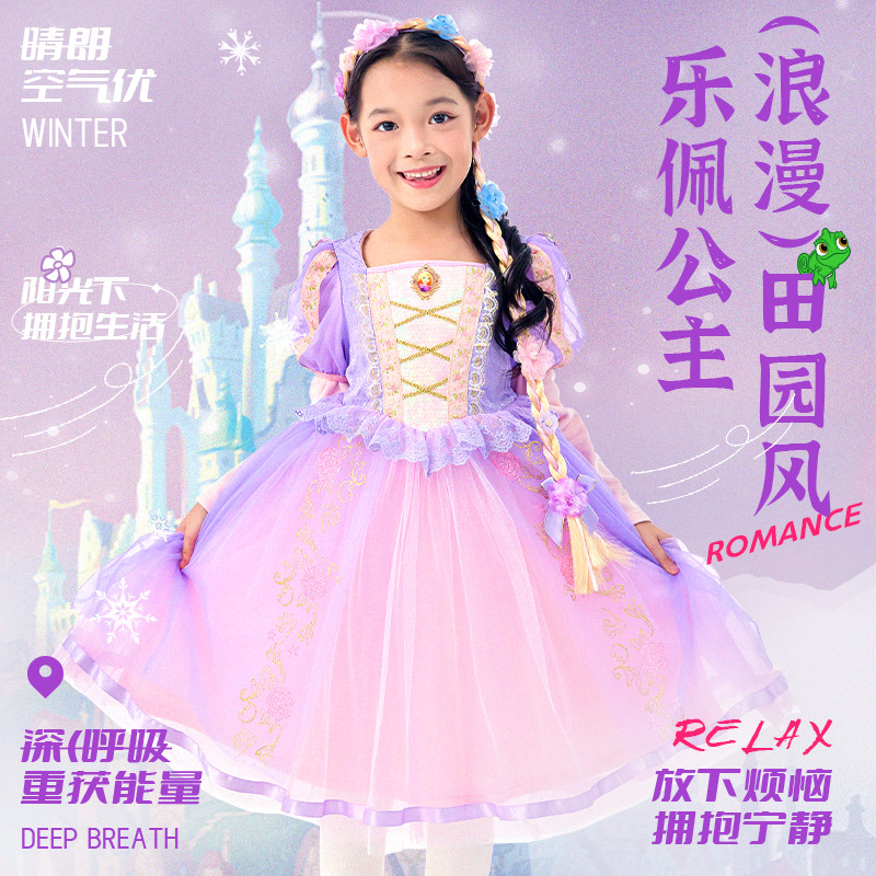 Dreampartybox长发乐佩公主裙迪士尼正版女童秋冬连衣裙加厚可爱