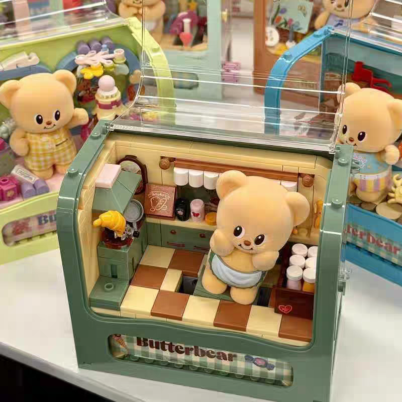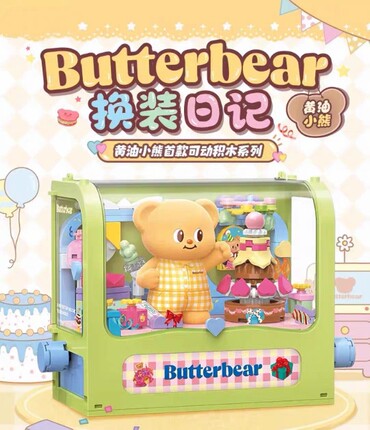 正版 黄油小熊盲盒换装日记积木拼装益智玩具手办女礼物公仔摆件