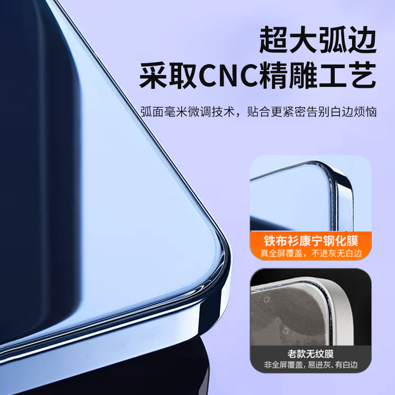 铁布衫适用于苹果14/13钢化膜iPhone14ProMax手机大弧边全屏覆盖防爆抗蓝光Plus龙鳞镀晶保护带防尘网贴膜