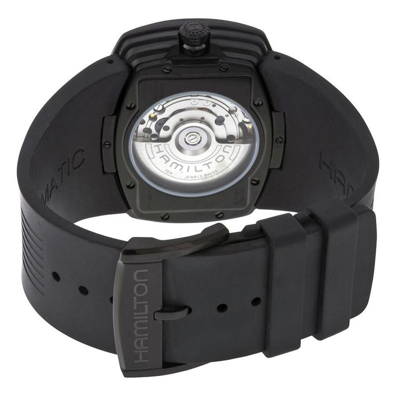 HAMILTON男士腕表数字显示防水石英机芯防刮黑色橡胶带PVD镀层