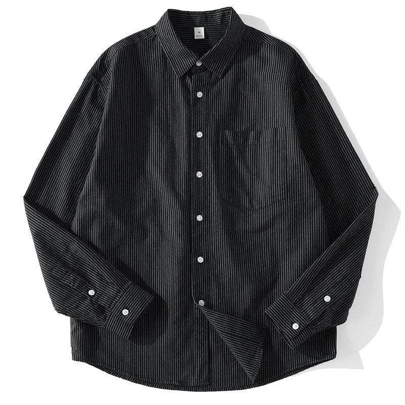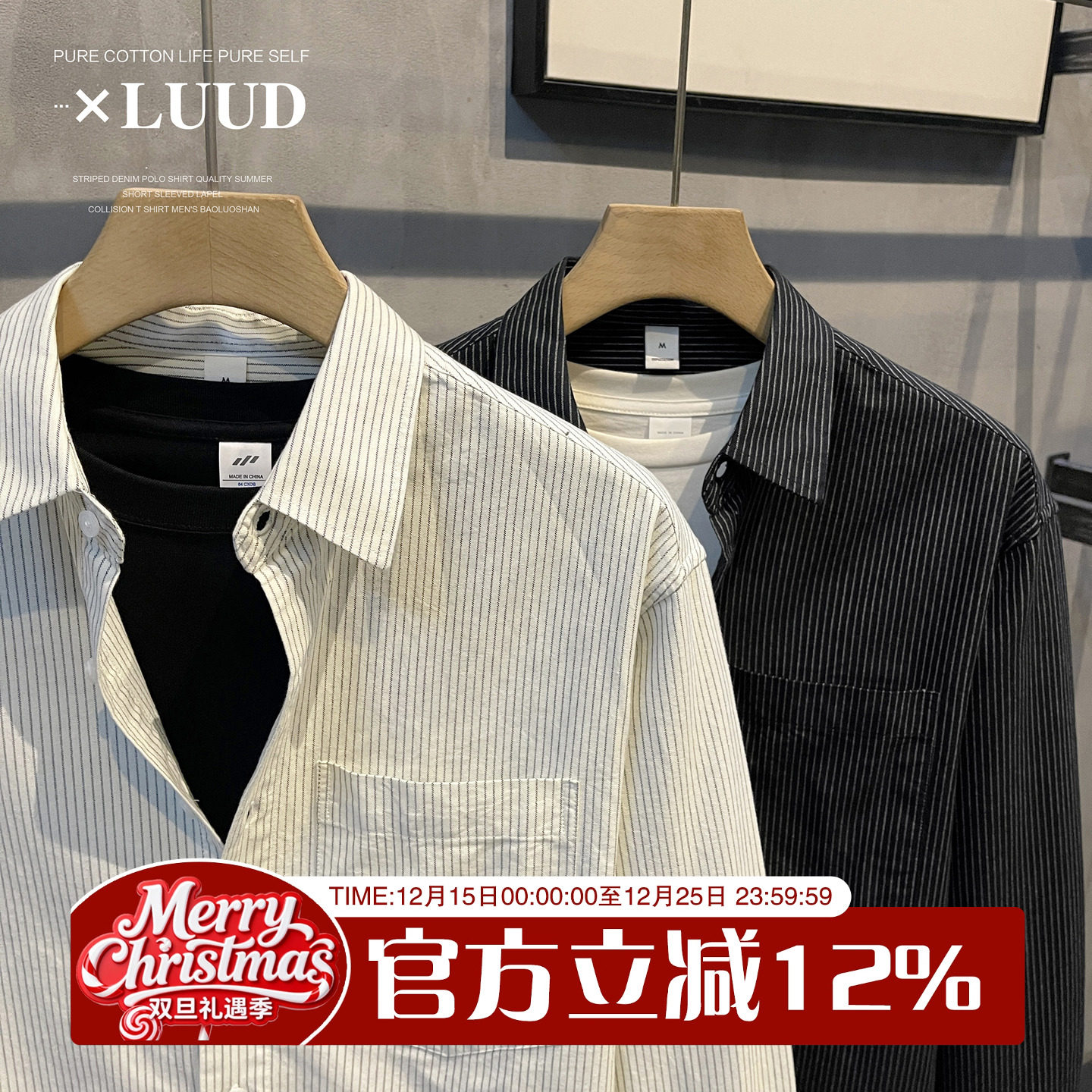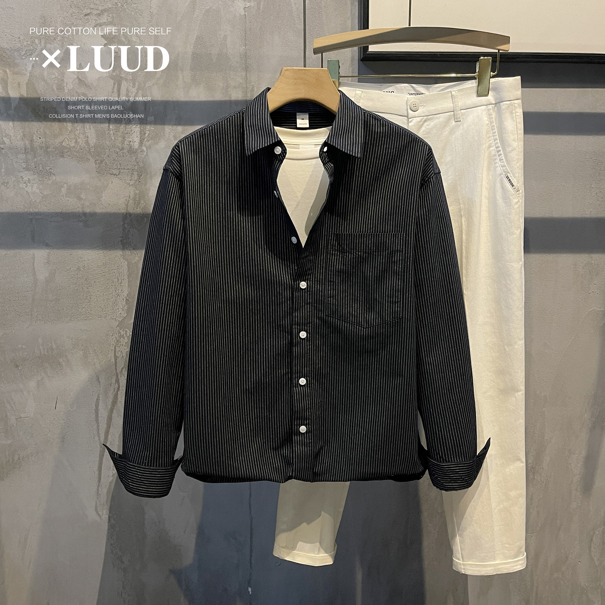 LUUD 韩系高级感纯棉衬衫男士条纹拼色长袖衬衣休闲复古翻领外套