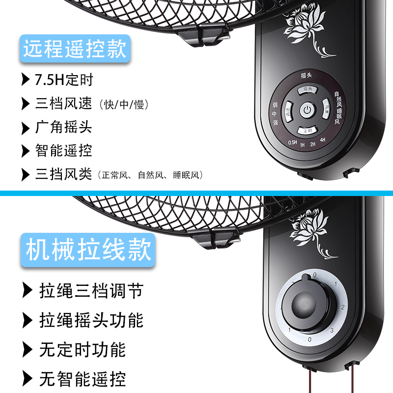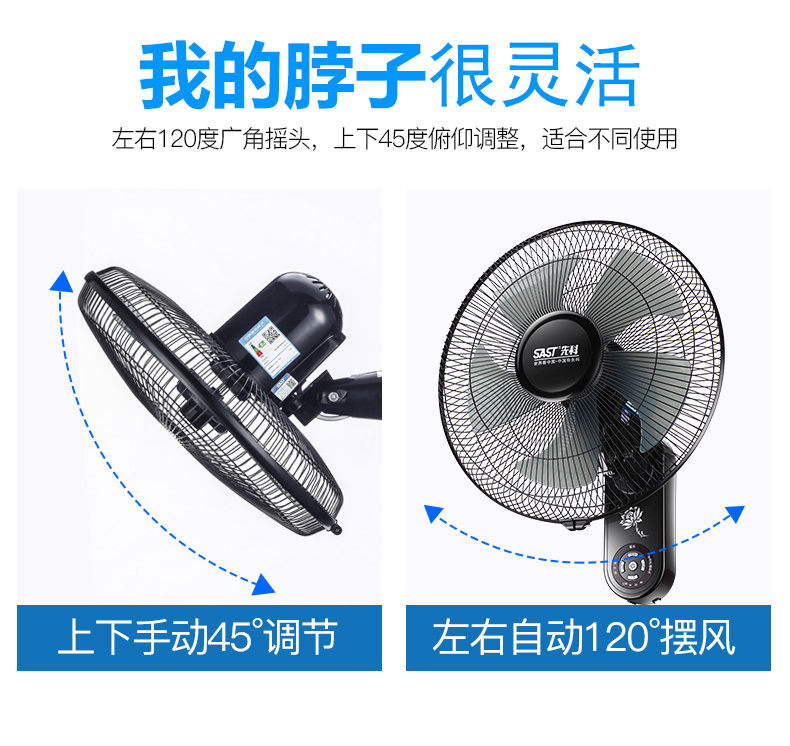 先科壁扇挂壁式电风扇家用静音墙壁工业摇头大电扇遥控餐厅商用