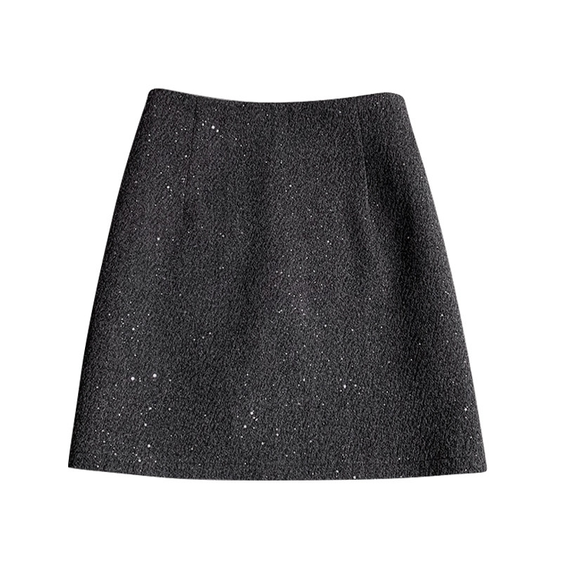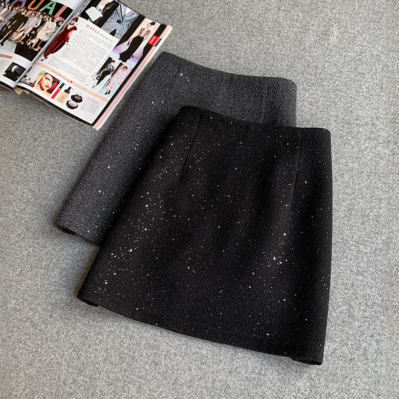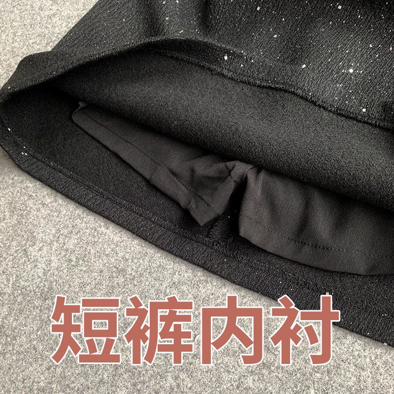 黑色毛呢半身裙亮片短裙闪闪星河气质高腰A字星空包臀裙显瘦短裙