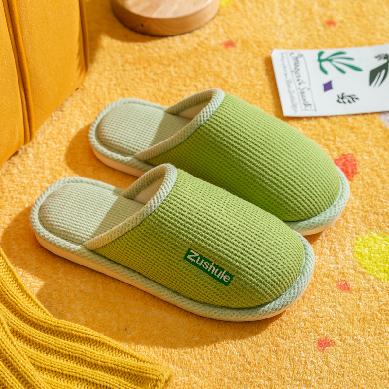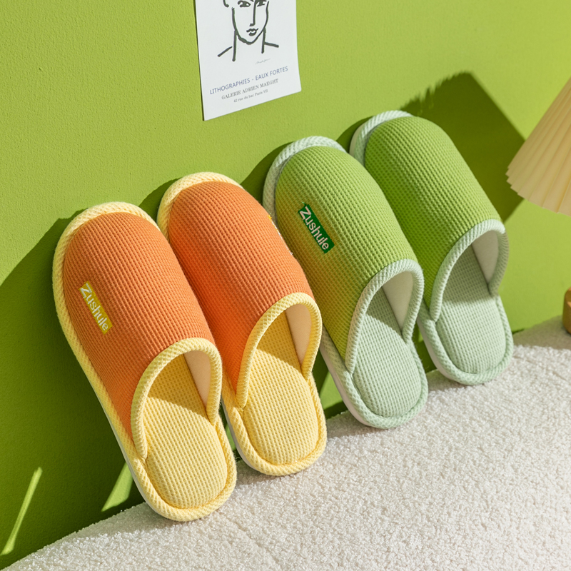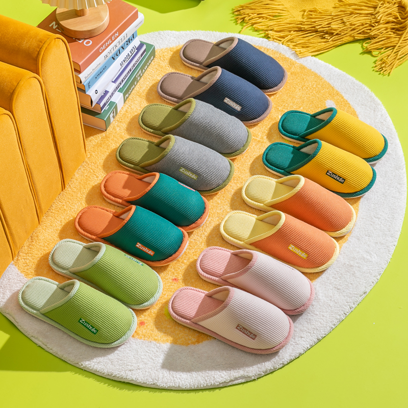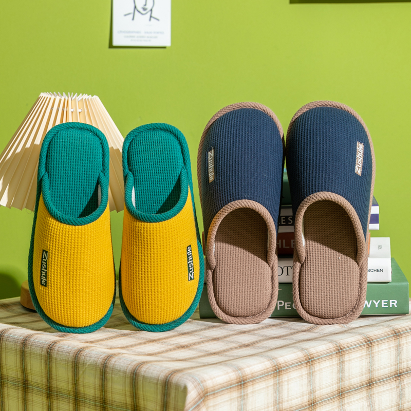 2022新款冬季棉拖鞋女居家简约卧室棉麻包头情侣室内月子防滑布艺